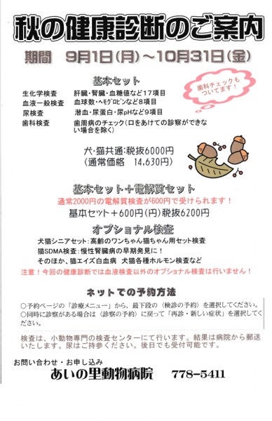 > 秋の健康診断はじまります